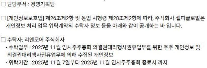 2025년11월 임시주주총회를 위한 개인정보처리업무 위탁에 따른 수탁자정보공개